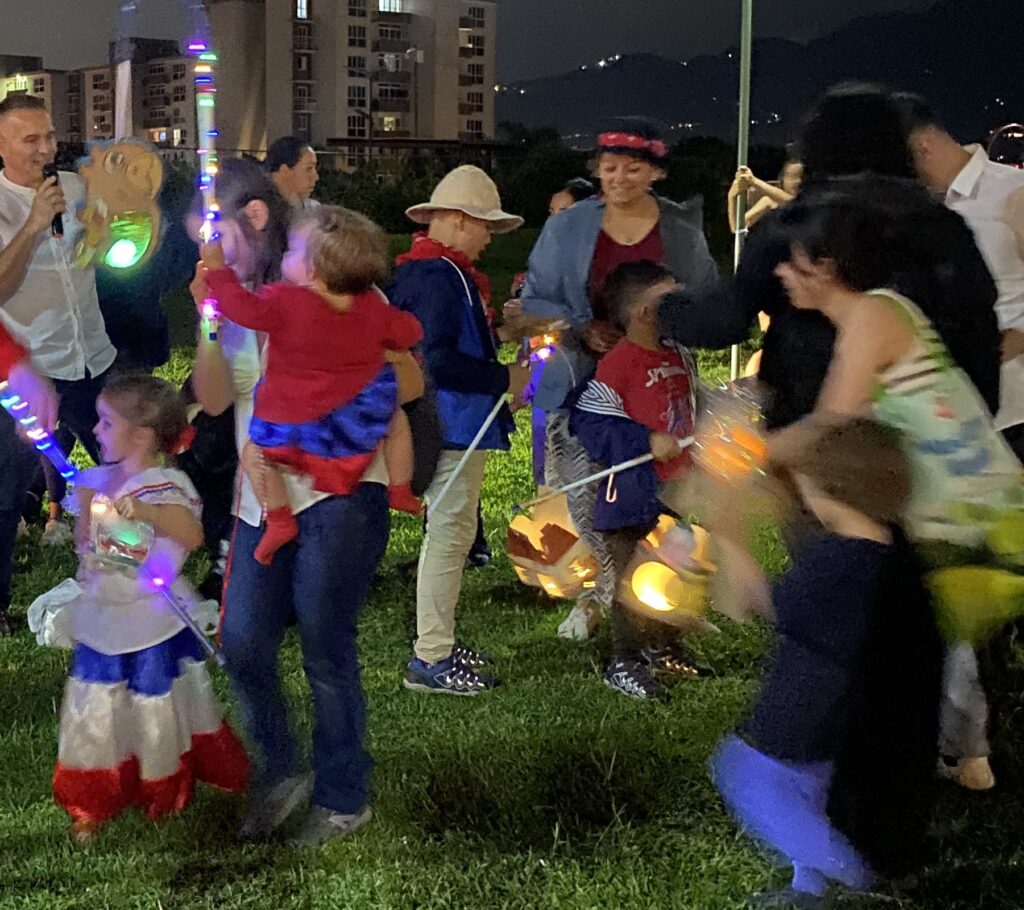 夕暮れどき、カラフルなランタンを持った子どもたちが、家族に囲まれながら笑顔で歩く光景は、まさに「絵本の世界」。