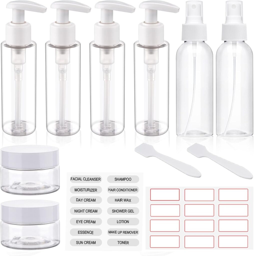 液体物を詰める容器選びも重要。旅行用に便利な小さなボトルや容器を用意しましょう。市販されている旅行用の容器は、100ml以下でコンパクトなものが多いです。とくにスプレータイプやディスペンサーを使うと、無駄なく液体を使い切ることができますよ。