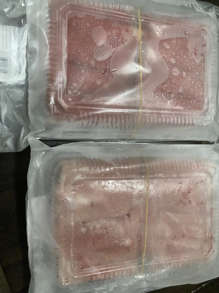 • 冷凍食品:薄切り肉(牛肉300 g)が約 2,800 コロン(約USD 5)、豚肉300 gが約 1,900 コロン (約USD 4)という価格帯。薄切りの肉というだけでありがたい上、価格も良心的。