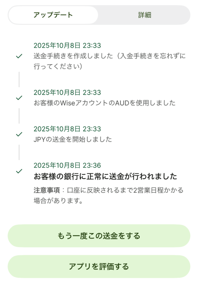 Wiseでオーストラリアドルをゆうちょにに送った際の記録